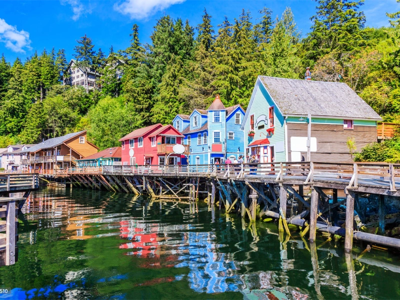 Known as the “Salmon Capital of the World,” Ketchikan is rich in Native culture and frontier charm. Visit the totem poles of Saxman Village, stroll along historic Creek Street’s boardwalk, or embark on a wildlife cruise to see eagles, seals, and perhaps a bear or two along the lush Tongass National Forest.